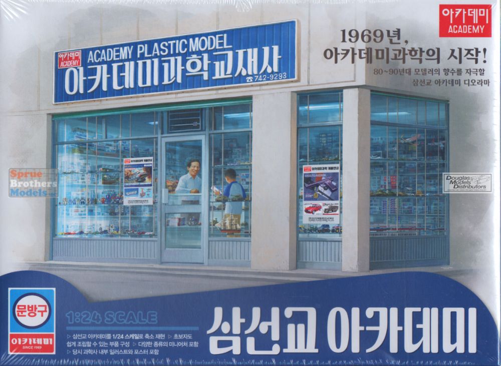 Diorama of Academy's (store front) retail establishment that brings modeler's a sense of nostalgia in the 80's and 90's.
