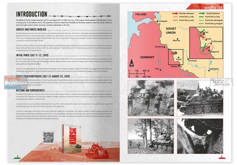 If you want to delve deeply into the history of the events of Operation Zitadelle, don’t miss the book The Battle of KURSK, available in English and Spanish. This book combines a comprehensive and detailed historical account, 120 historical photos from military archives of both sides, and over 70 full-color profiles of the vehicles and armored units used by both armies. Discover every detail of the battle with reliable and verified data, extracted from official German period documents preserved in the Bundesarchiv. An essential reference book for World War II enthusiasts.