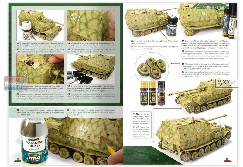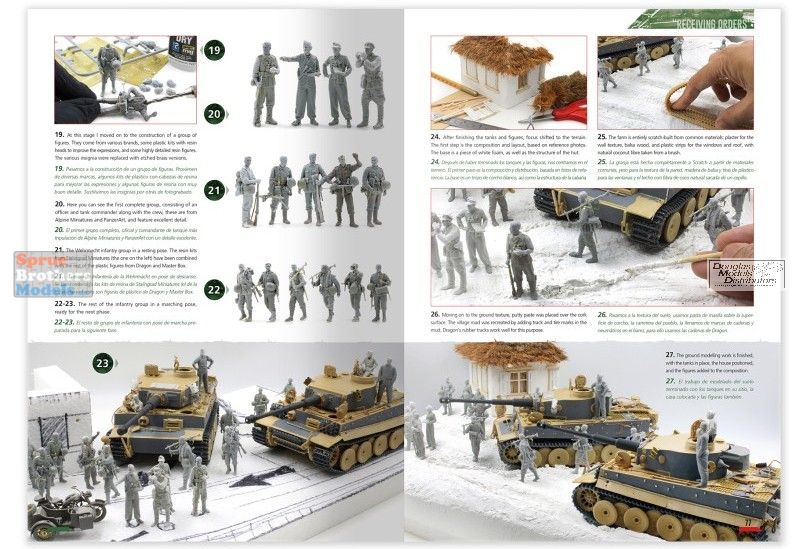 Paperback, 140 pages, with b/w period photos, color profiles, and high-quality color photos of the finished dioramas and step-by-step processes. English & Spanish text.