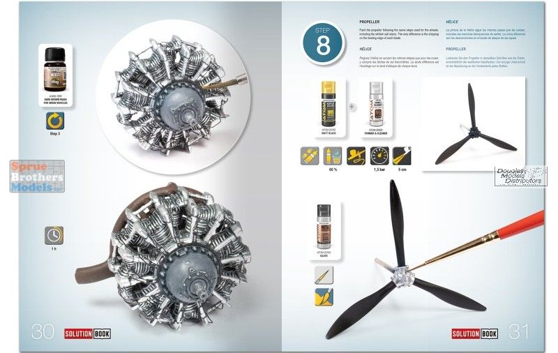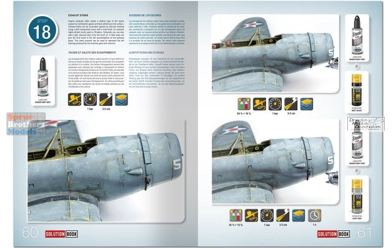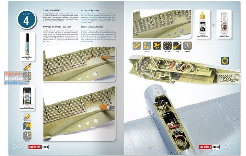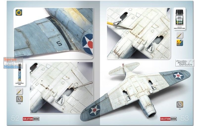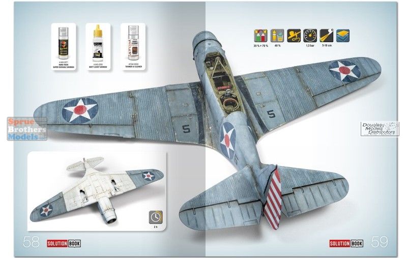 With this Solution Book, you can paint any U.S. Navy aircraft with the early Second World War camouflage, including the iconic F4U Corsair, F4F Wildcat, TBD-1 Devastator, TBF/TBM Avenger, SBD Dauntless, and many others. Most of the techniques described are optional, and it’s up to you to decide whether to apply them or not. If you want to improve your painting and weathering skills with these techniques, we recommend trying them all. This box includes all the necessary and most suitable products to create the effects described. By following the application order and drying times, you’ll be rewarded with excellent results. You can recreate any level of wear on your models by varying the intensity of each effect. The model used in this book is the Douglas TBD-1 Devastator in 1/48 scale by GWH. Now, choose your favorite model and let a master modeler guide you step by step!