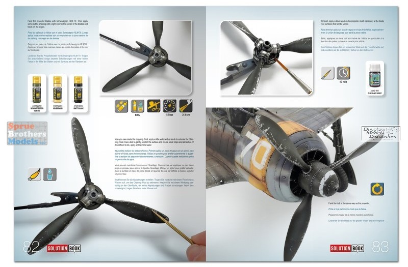 This Premium Solution Book is a 104-page guide that not only explains how to paint and age the camouflage of late-war Luftwaffe fighters to your liking, it also includes a complete step-by-step guide to detailing the model with accessories from various brands and includes panel riveting, cockpit and engine detailing, machine guns, and landing gear upgrades.