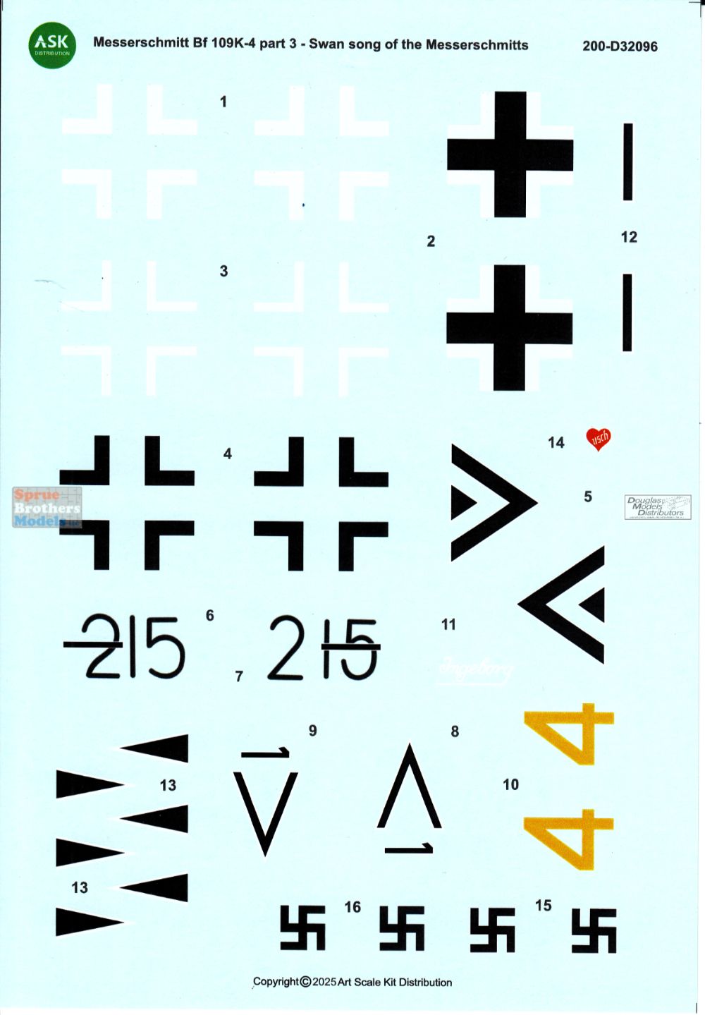 ASKD32096 1:32 ASK/Art Scale Decals - Bf109K-4 'Swan Song of the Messerschmitts' Part 3
