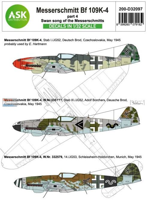 ASKD32097 1:32 ASK/Art Scale Decals - Bf109K-4 'Swan Song of the Messerschmitts' Part 4