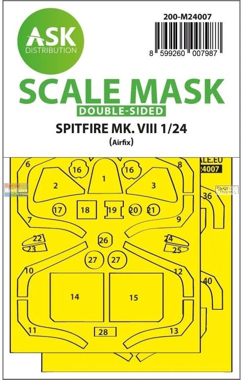 ASKM24007 1:24 ASK/Art Scale Double-Sided Mask - Spitfire Mk.VIII (AFX kit)