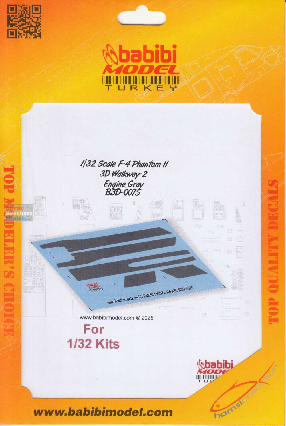 BBBB3D0075 1:32 Babibi Model 3D Decals F-4 Phantom II Walkway Version 2 Engine Gray