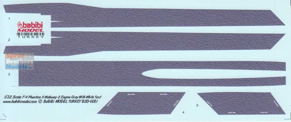 BBBB3D0081 1:32 Babibi Model 3D Decals F-4 Phantom II Walkway Version 2 Engine Gray with White Text