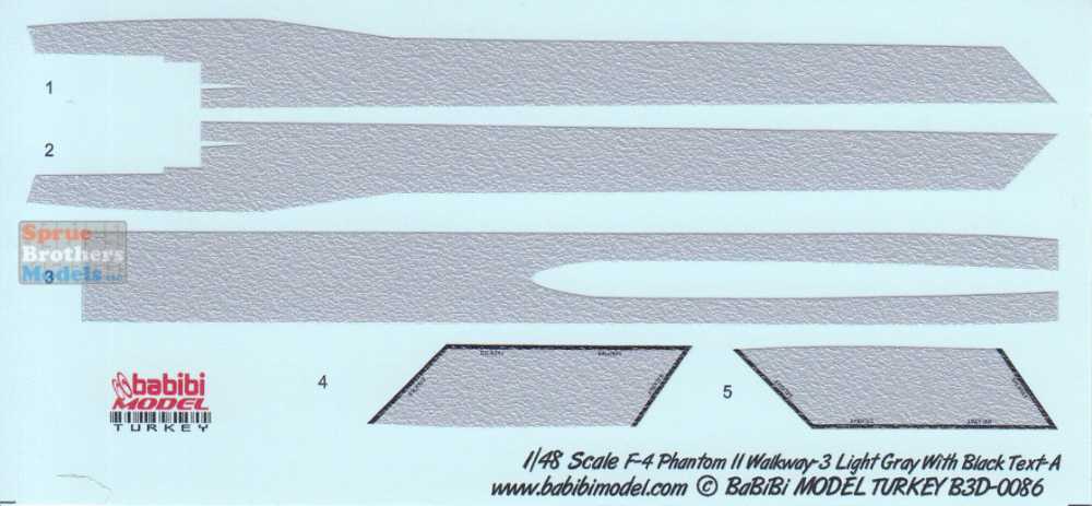 BBBB3D0086 1:48 Babibi Model 3D Detail Set - F-4 Phantom II Walkways Version 3 Light Gray with Black Text-A