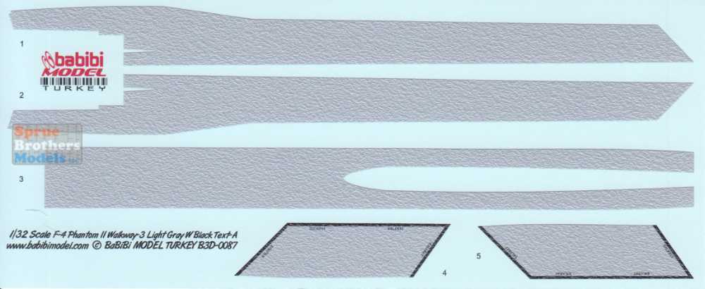 BBBB3D0087 1:32 Babibi Model 3D Decals F-4 Phantom II Walkway Version 3 Light Gray with Black Text-A