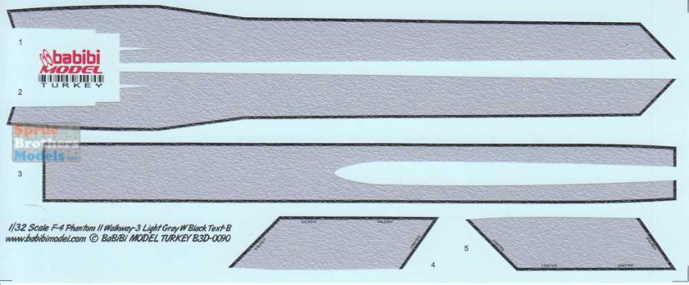 BBBB3D0090 1:32 Babibi Model 3D Decals F-4 Phantom II Walkway Version 3 Light Gray with Black Text-B