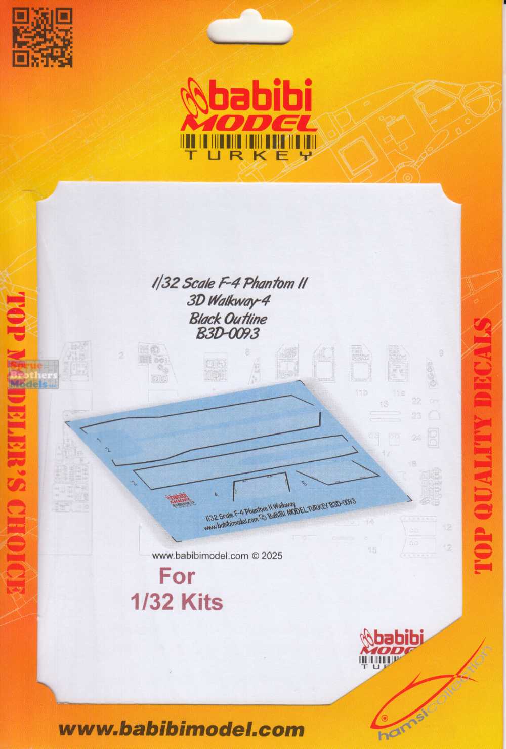 BBBB3D0093 1:32 Babibi Model 3D Decals F-4 Phantom II Walkway Version 4 Black Outline