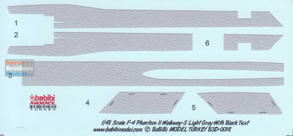 BBBB3D0098 1:48 Babibi Model 3D Detail Set - F-4 Phantom II Walkways Version 5 Light Gray with Black Text