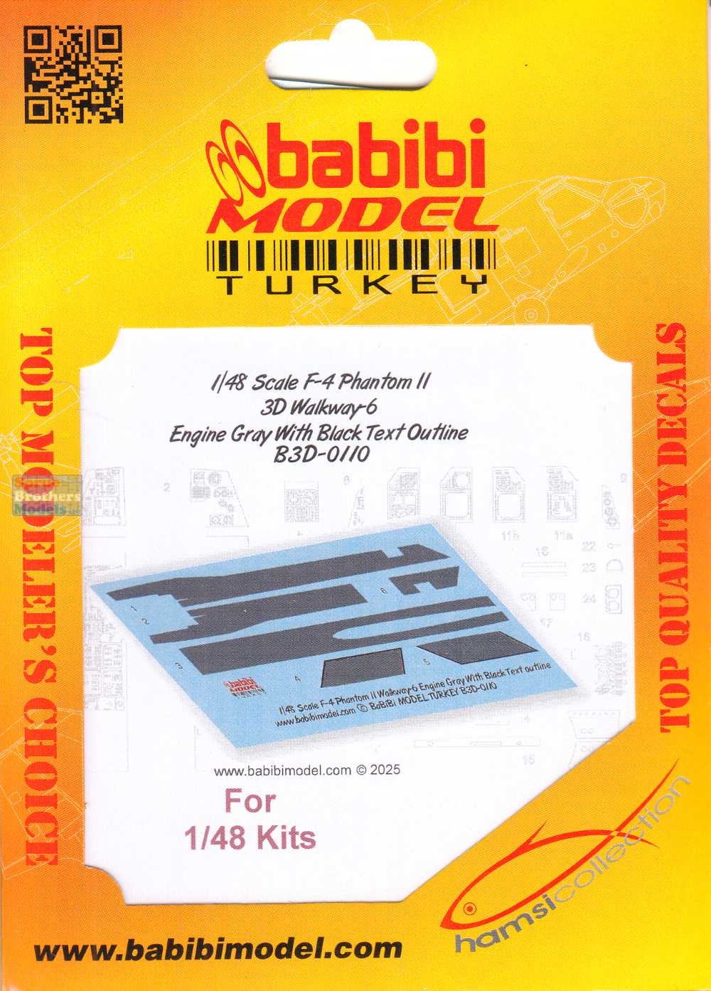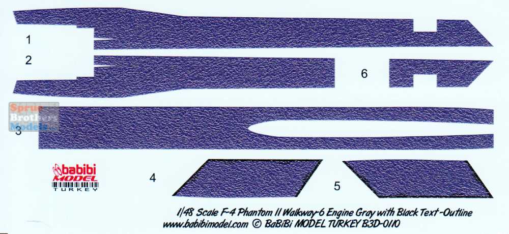BBBB3D0110 1:48 Babibi Model 3D Detail Set - F-4 Phantom II Walkways Version 6 Engine Gray with Black Text Outline
