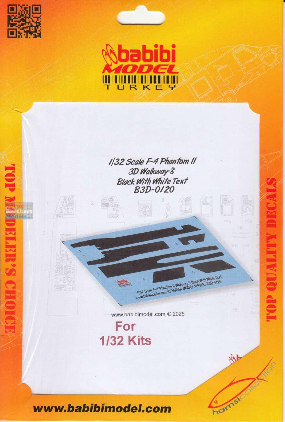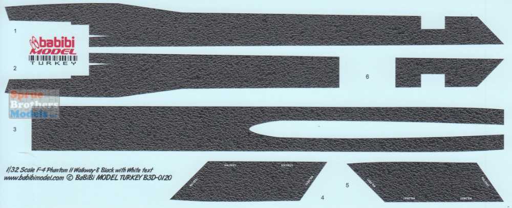 BBBB3D0120 1:32 Babibi Model 3D Decals F-4 Phantom II Walkway Version 8 Black with White Text