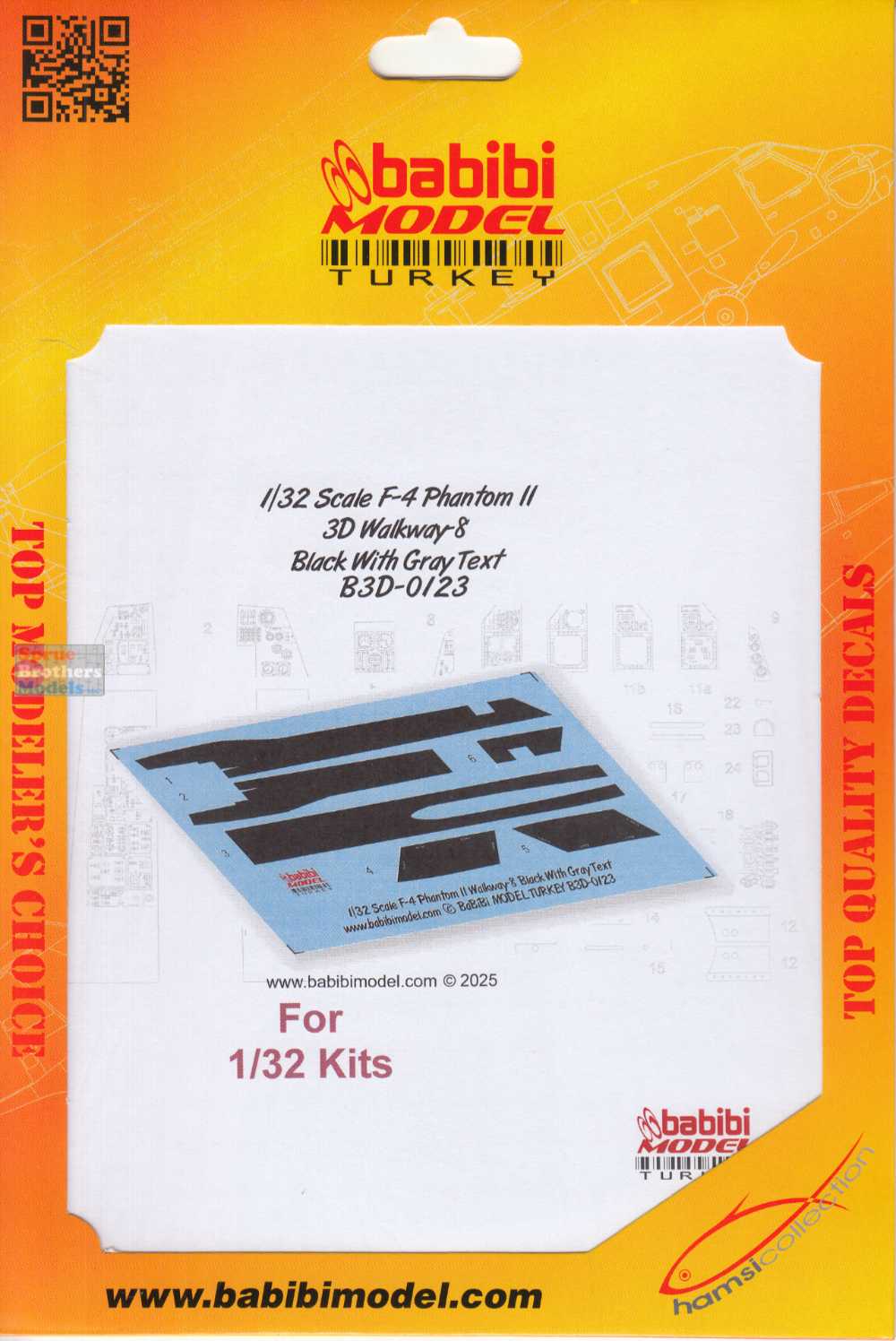 BBBB3D0123 1:32 Babibi Model 3D Decals F-4 Phantom II Walkway Version 8 Black with Gray Text
