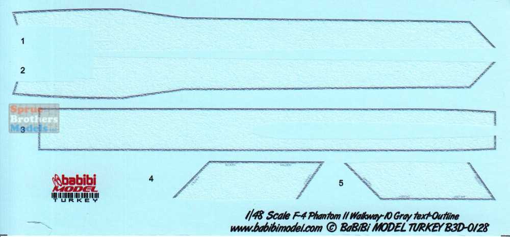 BBBB3D0128 1:48 Babibi Model 3D Detail Set - F-4 Phantom II Walkways Version 10 Gray Text Outlines