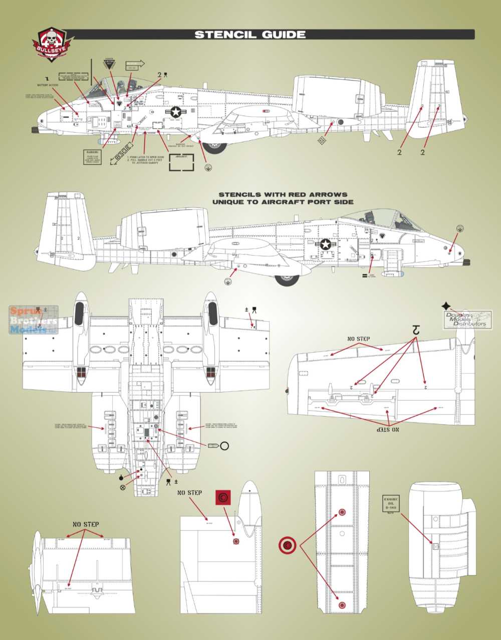 BMA48055 1:48 Bullseye Model Aviation Decals - A-10 Thunderbolt II 'Big Ass Warthog' Stencils European One Scheme