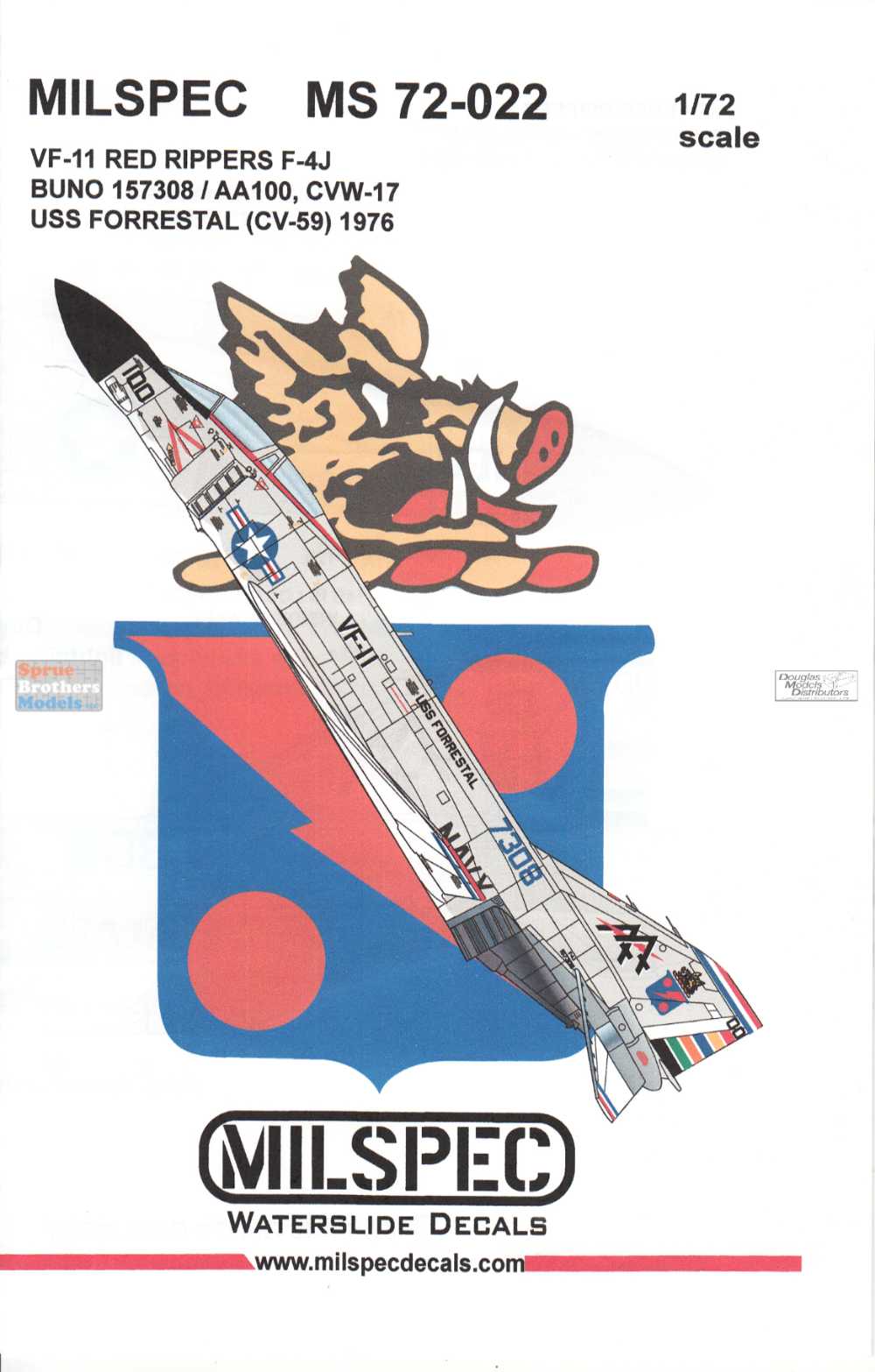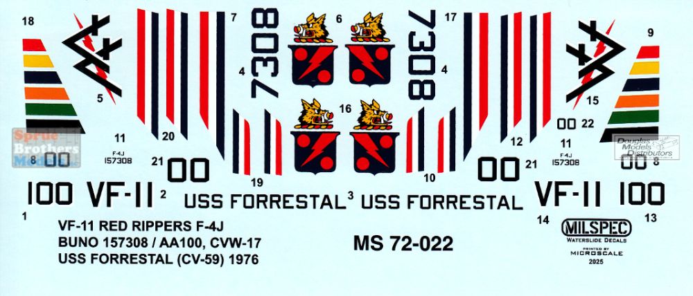 CAMMS72022 1:72 MilSpec Decals - F-4J Phantom II VF-11 Red Rippers USS Forrestal 1976