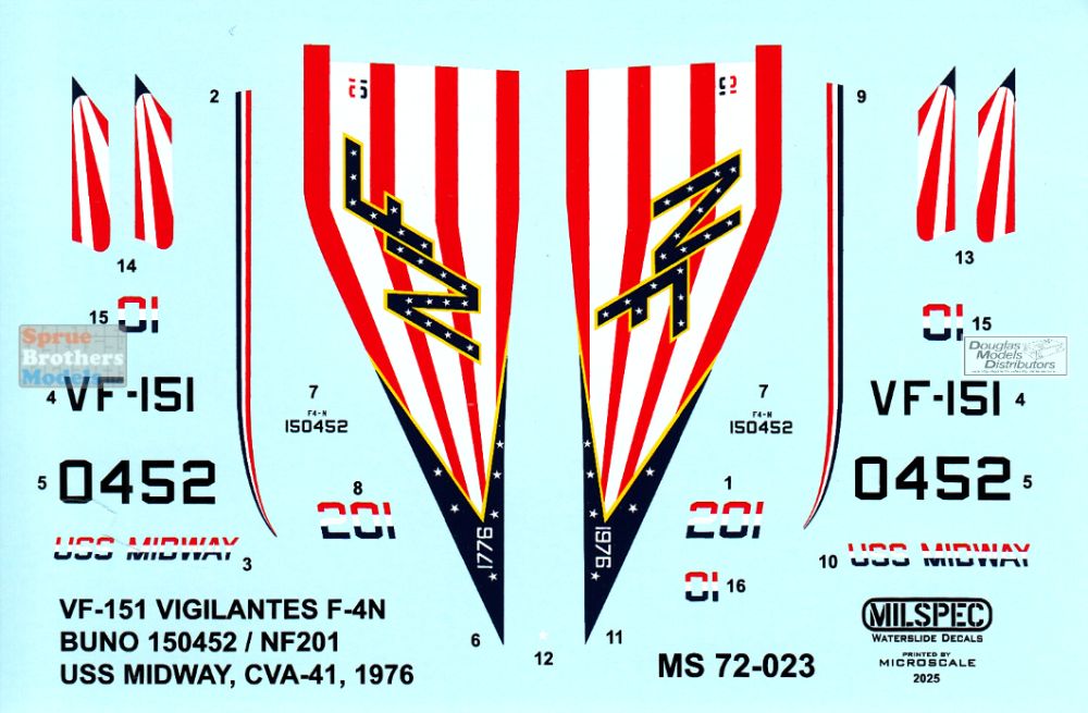CAMMS72023 1:72 MilSpec Decals - F-4N Phantom II VF-151 Vigilantes USS Midway 1976