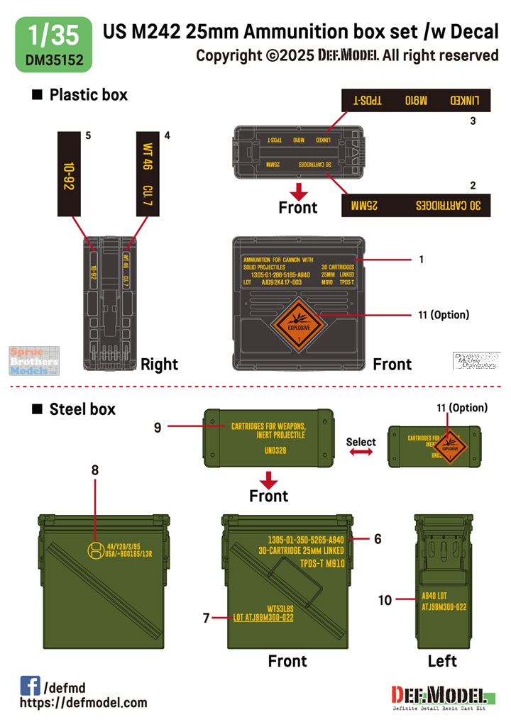 DEFDM35152 1:35 DEF Model US M242 25mm Ammunition Box Set