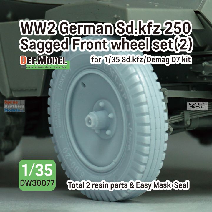 DEFDW30077 1:35 DEF Model WW2 German Sd.Kfz.250 Sagged Front Wheel Set #2