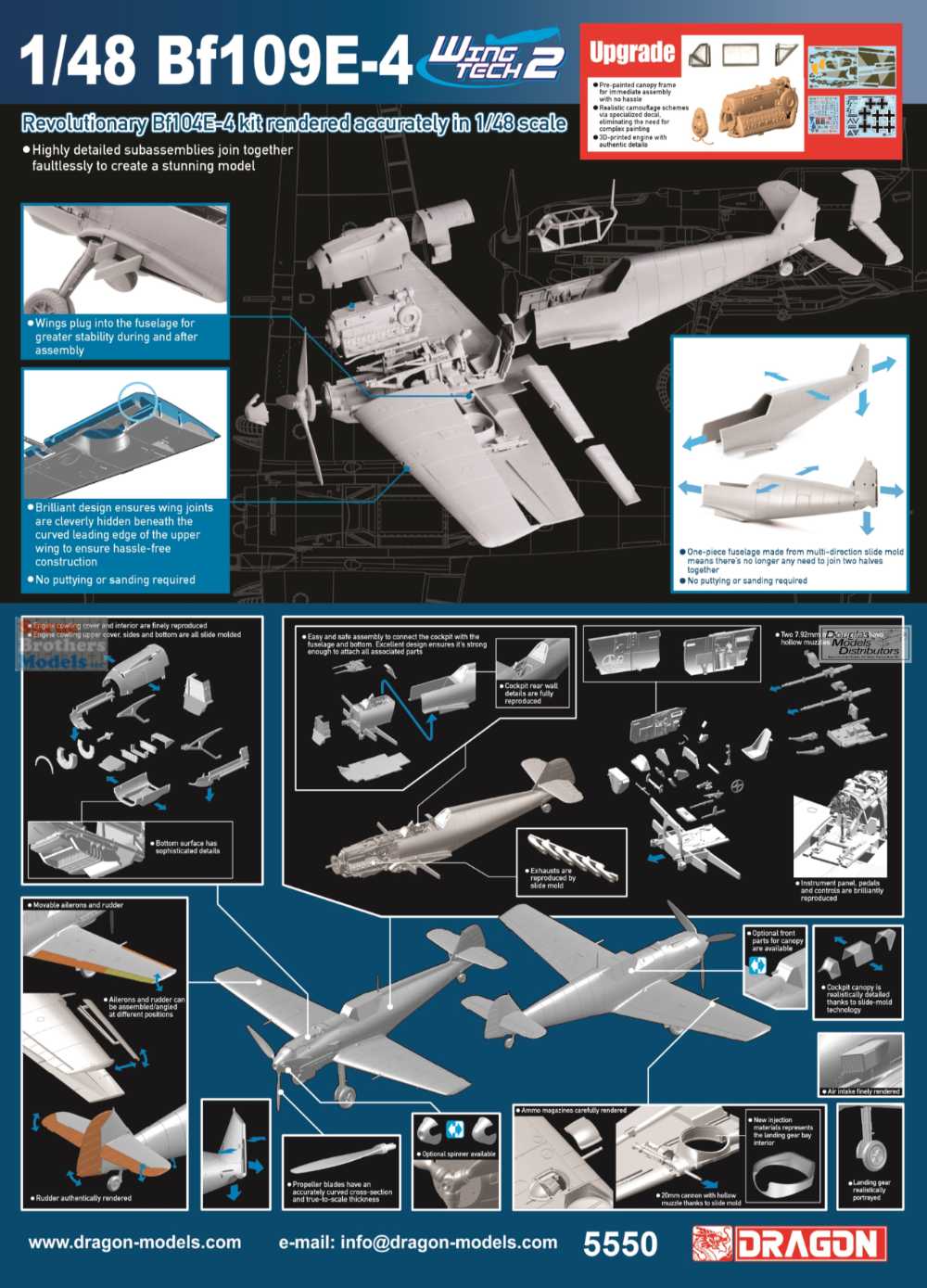 Finally, in another first for a Dragon kit, the Bf109E-4 is packed in a completely transparent plastic box and an outer cardboard sleeve, which matches the innovativeness of our new series. It also allows for clear visibility of the contents inside.