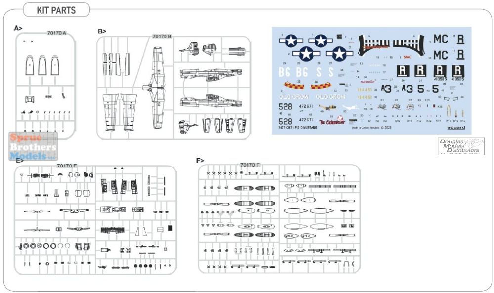 The Weekend edition kit of US WWII fighter aircraft P-51D Mustang in 1/72 scale.The kit is focused on machines with the dorsal fin assembly from the 8th, 15th and 20th Fighter Group USAAF.