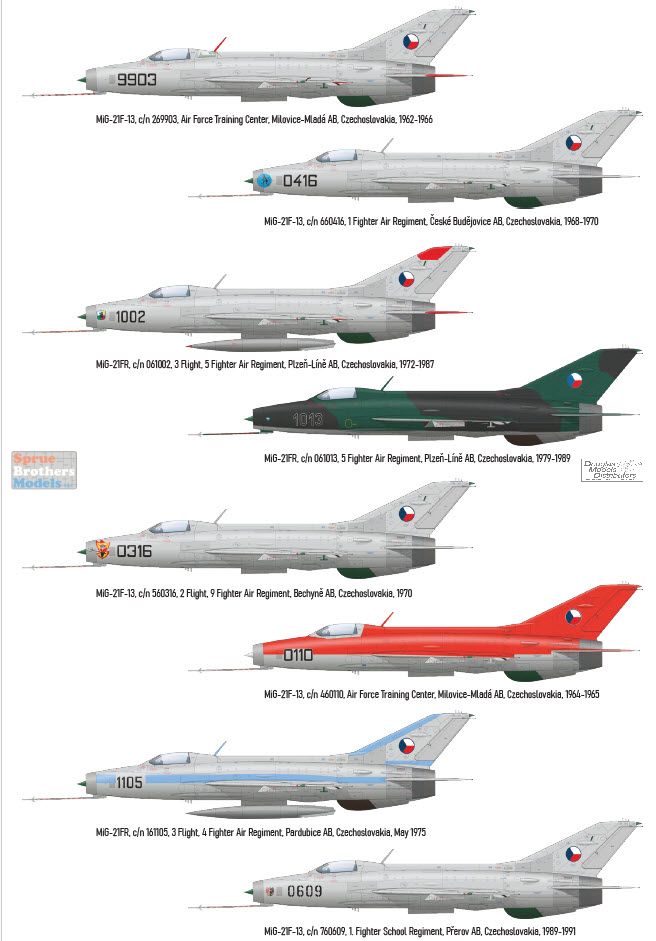 The kit offers 8 MiGs serving in the Czechoslovak Air Force.