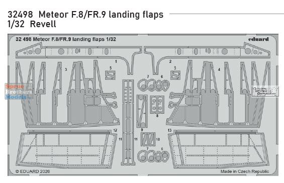 EDU32498 1:32 Eduard PE - Meteor F.8 / FR.9 Landing Flaps (REV kit)