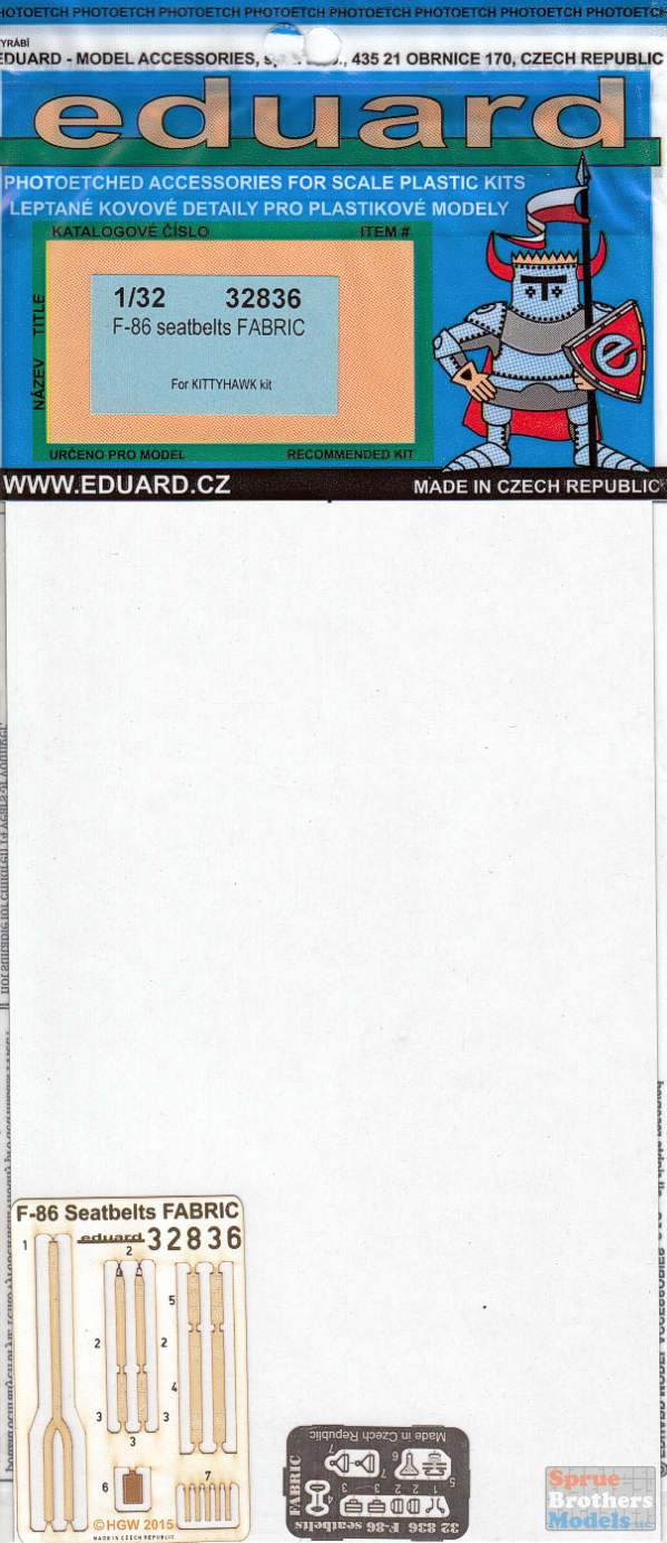 EDU32836 1:32 Eduard Color PE - F-86D Sabre Dog Seatbelts Fabric (KTH kit)