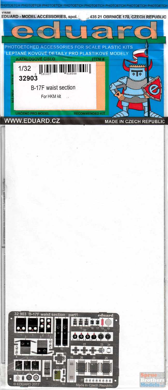 EDU32903 1:32 Eduard Color PE - B-17F Flying Fortress Waist Section Detail Set (HKM kit)