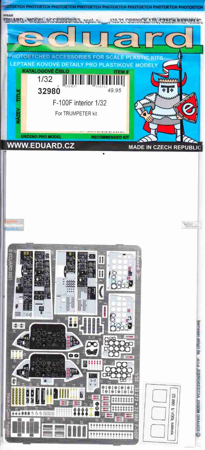 EDU32980 1:32 Eduard Color PE - F-100F Super Sabre Interior Detail Set (TRP kit)