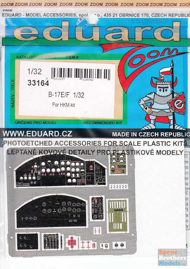 EDU33164 1:32 Eduard Color Zoom PE - B-17E B-17F Flying Fortress Interior (HKM kit)