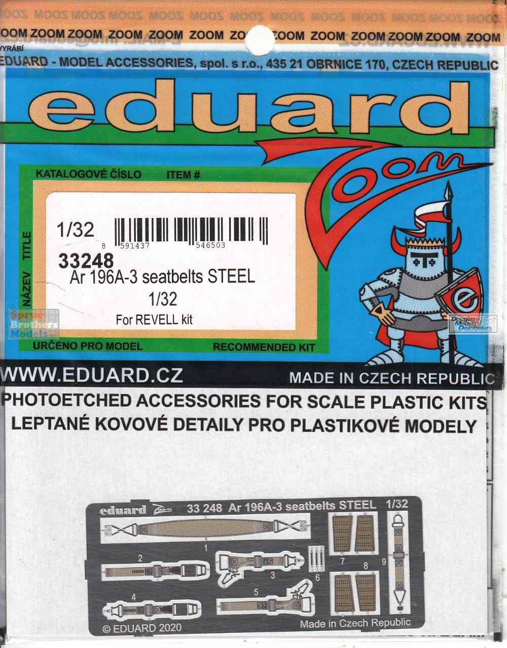 EDU33248 1:32 Eduard Color Zoom PE - Ar 196A-3 Seatbelts [STEEL] (REV kit)