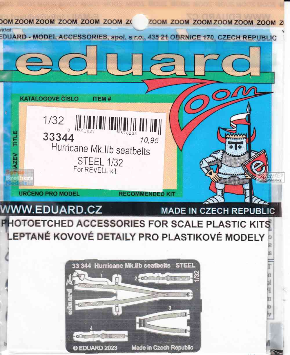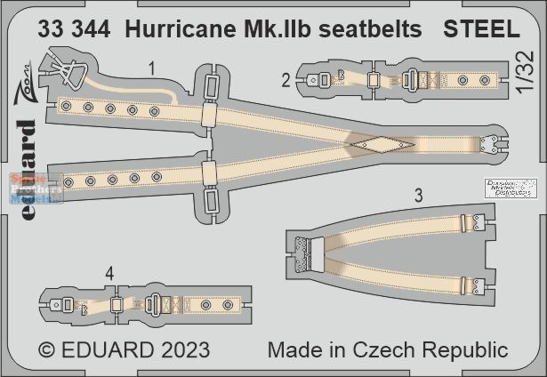 EDU33344 1:32 Eduard Color Zoom PE - Hurricane Mk.IIb Seatbelts [STEEL] (REV kit)