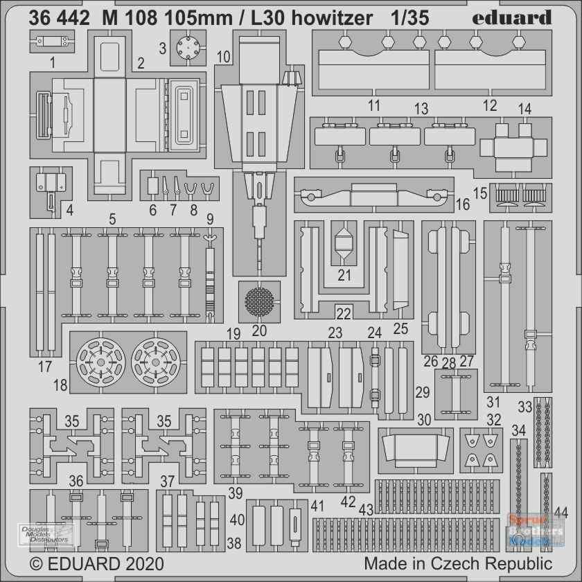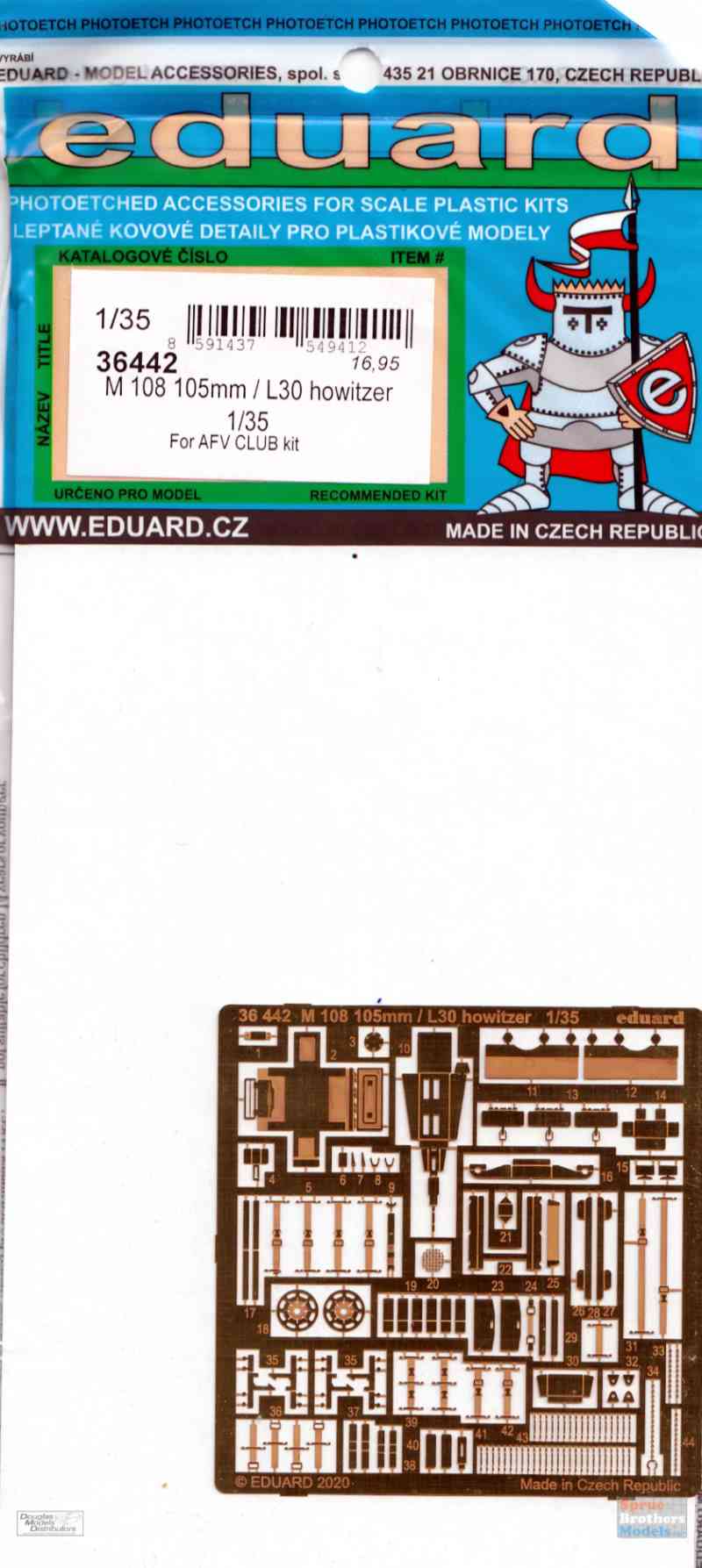 EDU36442 1:35 Eduard PE - M108 105mm/L30 Howitzer Detail Set (AFV kit)