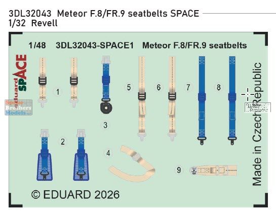 EDU3DL32043 1:32 Eduard SPACE - Meteor F.8 / FR.9 Seatbelts (REV kit)