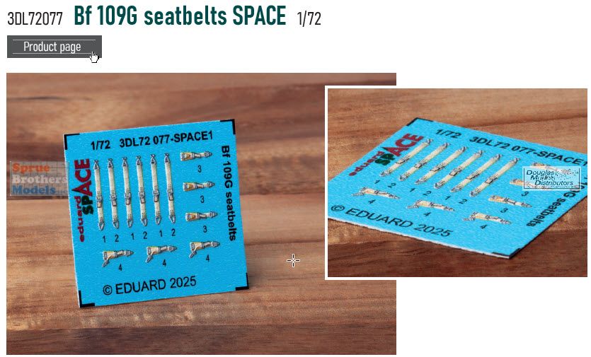 EDU3DL72077 1:72 Eduard SPACE - Bf109G Seatbelts