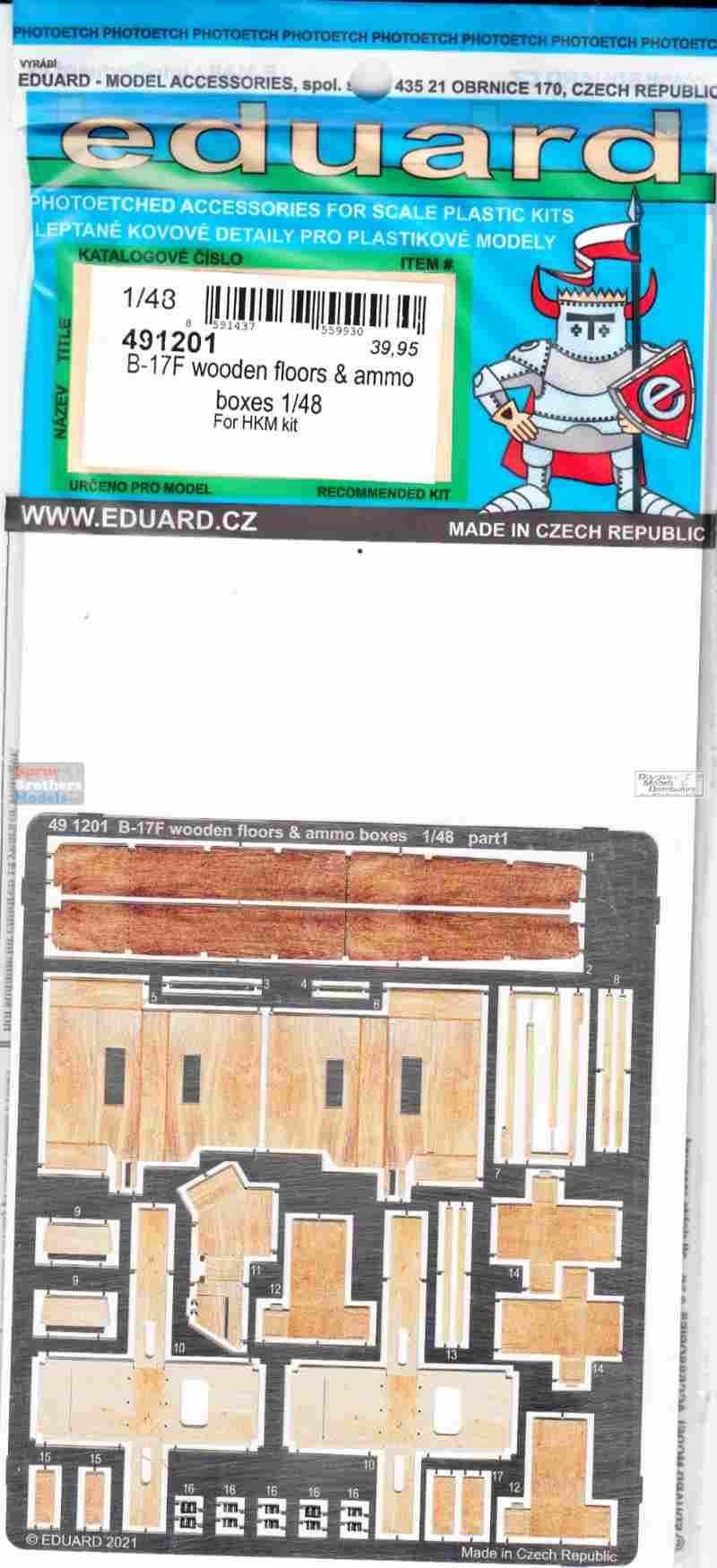 EDU491201 1:48 Eduard Color PE - B-17F Flying Fortress Wooden Floors & Ammo Boxes (HKM kit)