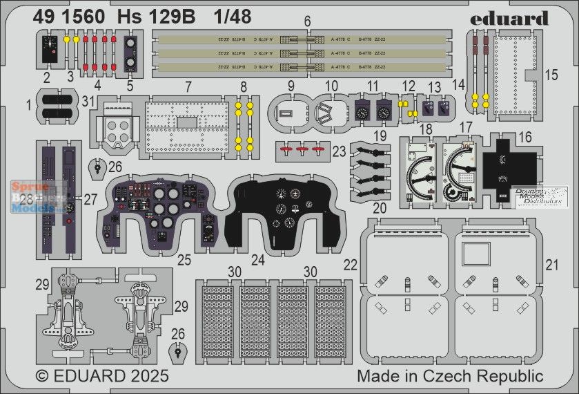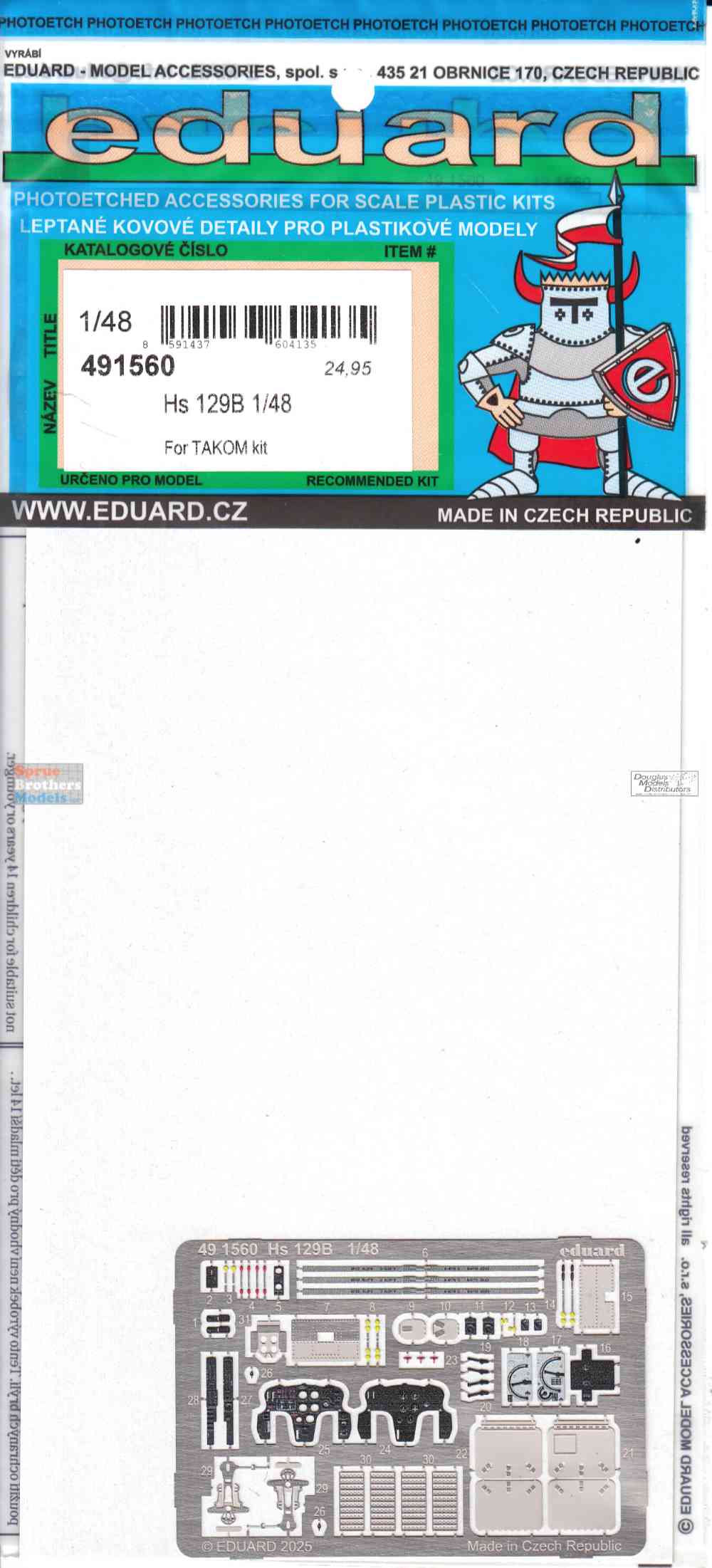 EDU491560 1:48 Eduard Color PE - Hs129B Detail Set (TAK kit)