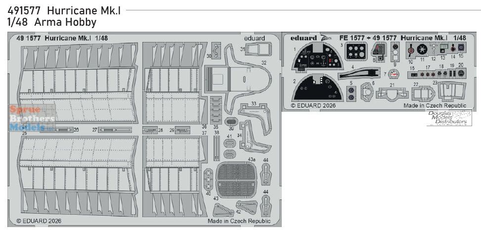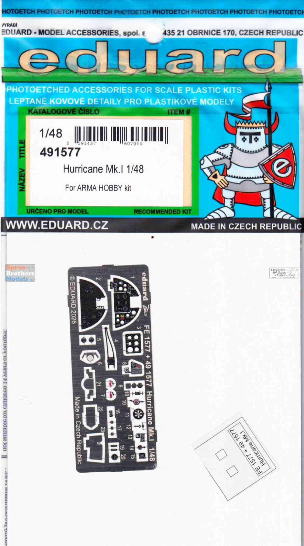 EDU491577 1:48 Eduard Color PE - Hurricane Mk.I Detail Set (ARM kit)