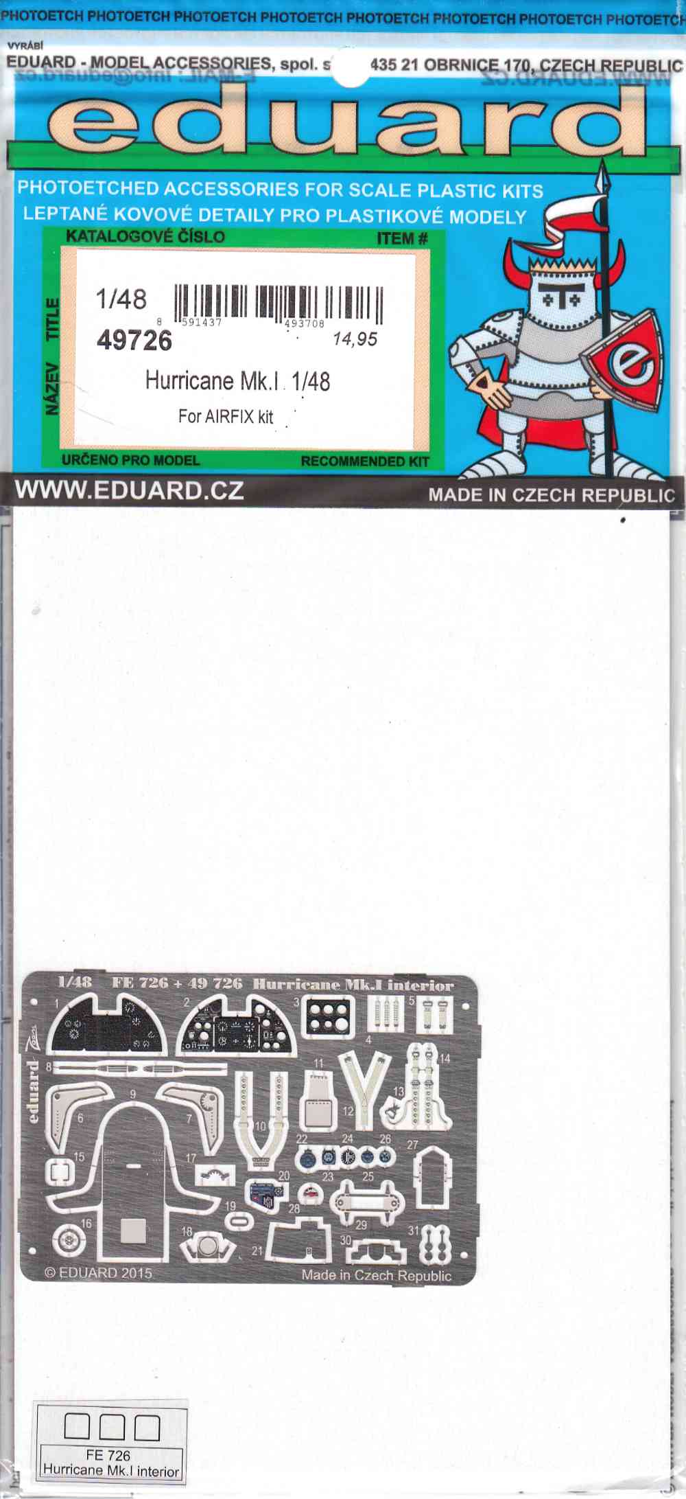 EDU49726 1:48 Eduard Color PE - Hurricane Mk.I Detail Set (AFX kit)