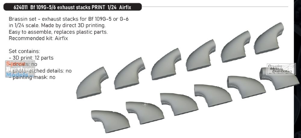 EDU624011 1:24 Eduard Brassin Bf109G-5 Bf109G-6 Exhaust Stacks (AFX kit)