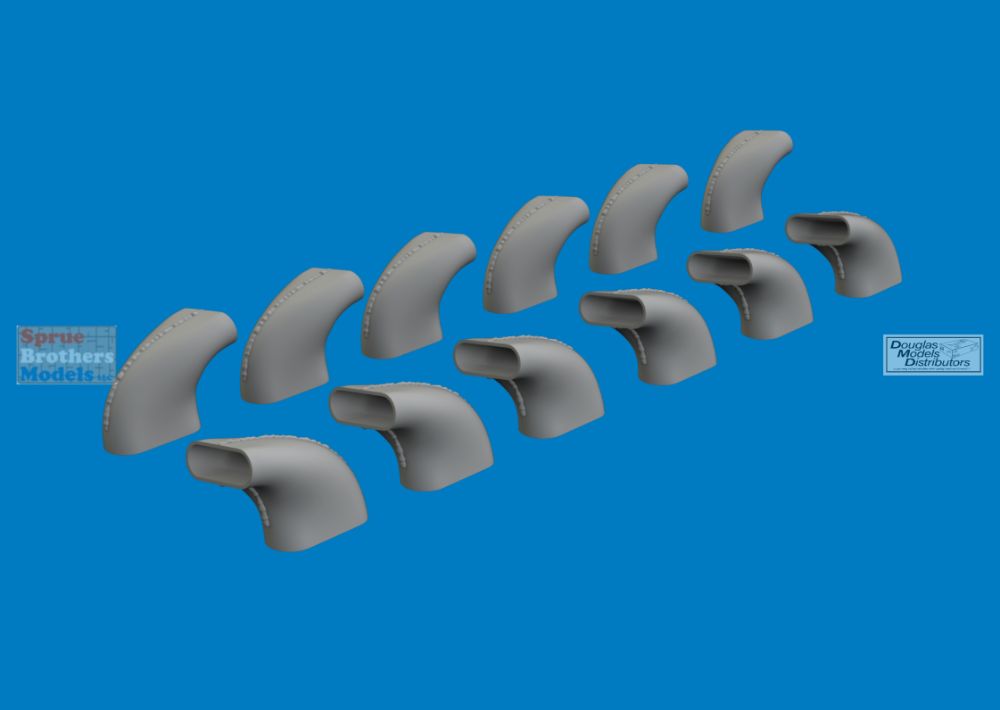 Brassin set exhaust stacks for Bf 109G-5 or G-6 in 1/24 scale.