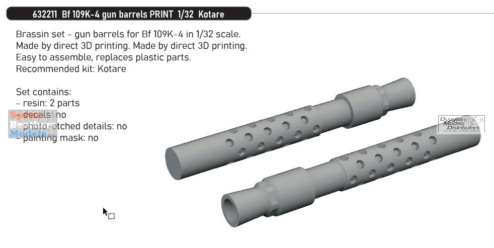 Brassin set gun barrels for Bf 109K-4 in 1/32 scale.