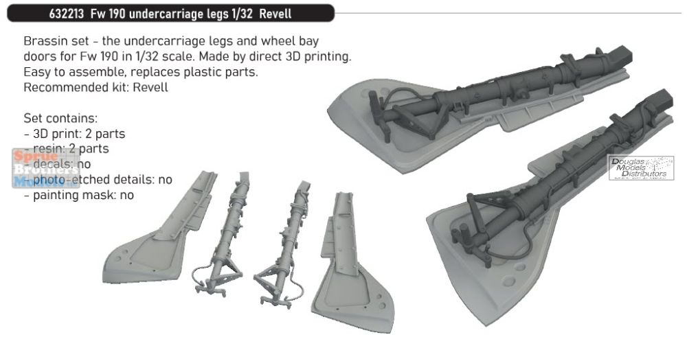 Brassin set the undercarriage legs and wheel bay doors for Fw 190 in 1/32 scale.