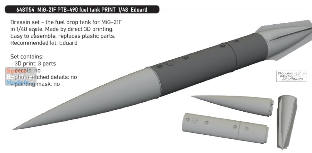 EDU6481154 1:48 Eduard Brassin - MiG-21F Fishbed PTB-490 Fuel Tank (EDU kit)