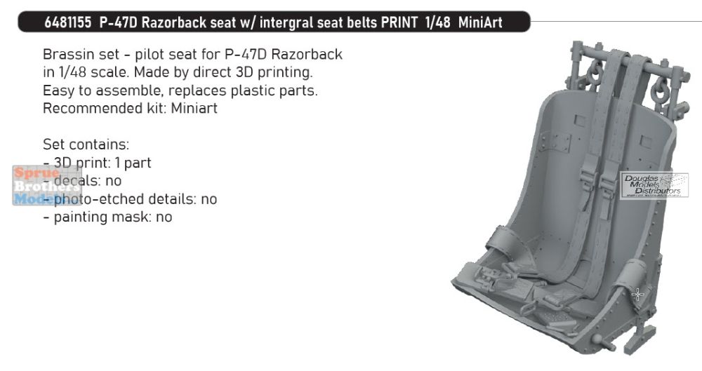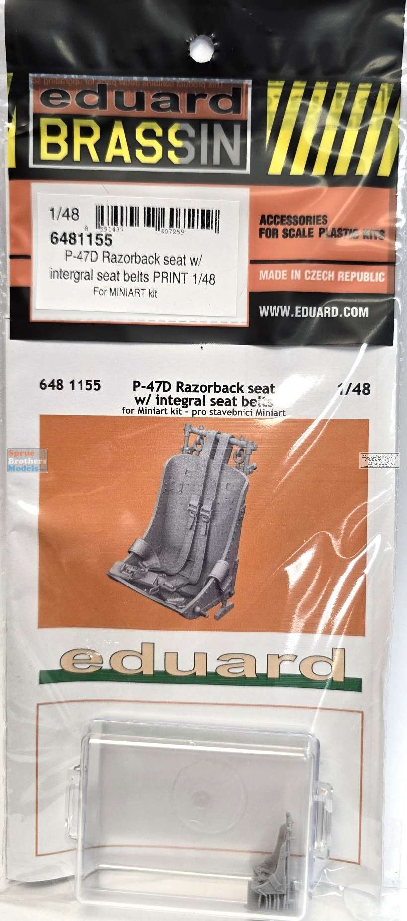 EDU6481155 1:48 Eduard Brassin - P-47D Thunderbolt Razorback Seat with Integral Seatbelts (MIA kit)