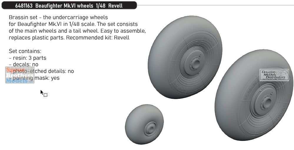Brassin set the undercarriage wheels for Beaufighter Mk.VI in 1/48 scale.