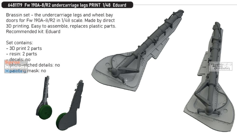 Brassin set the undercarriage legs and wheel bay doors for Fw 190A-8/R2 in 1/48 scale.