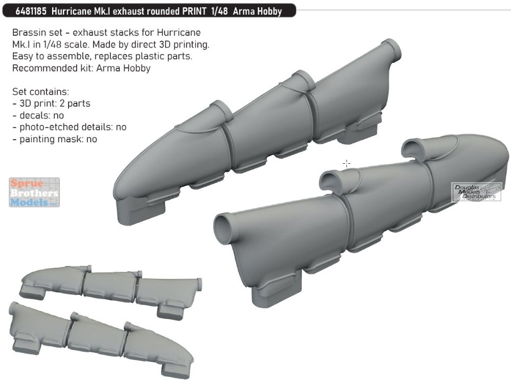EDU6481185 1:48 Eduard Brassin - Hurricane Mk.I Exhausts Rounded (ARM kit)